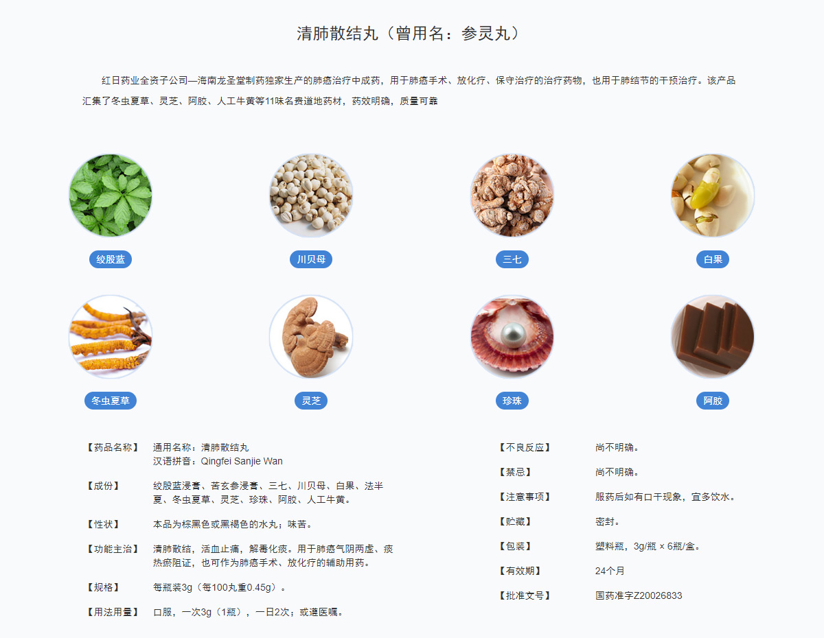 用于肺癌气阴两虚、痰热瘀阻证,也可作为肺癌手术、放化疗的辅助用药。